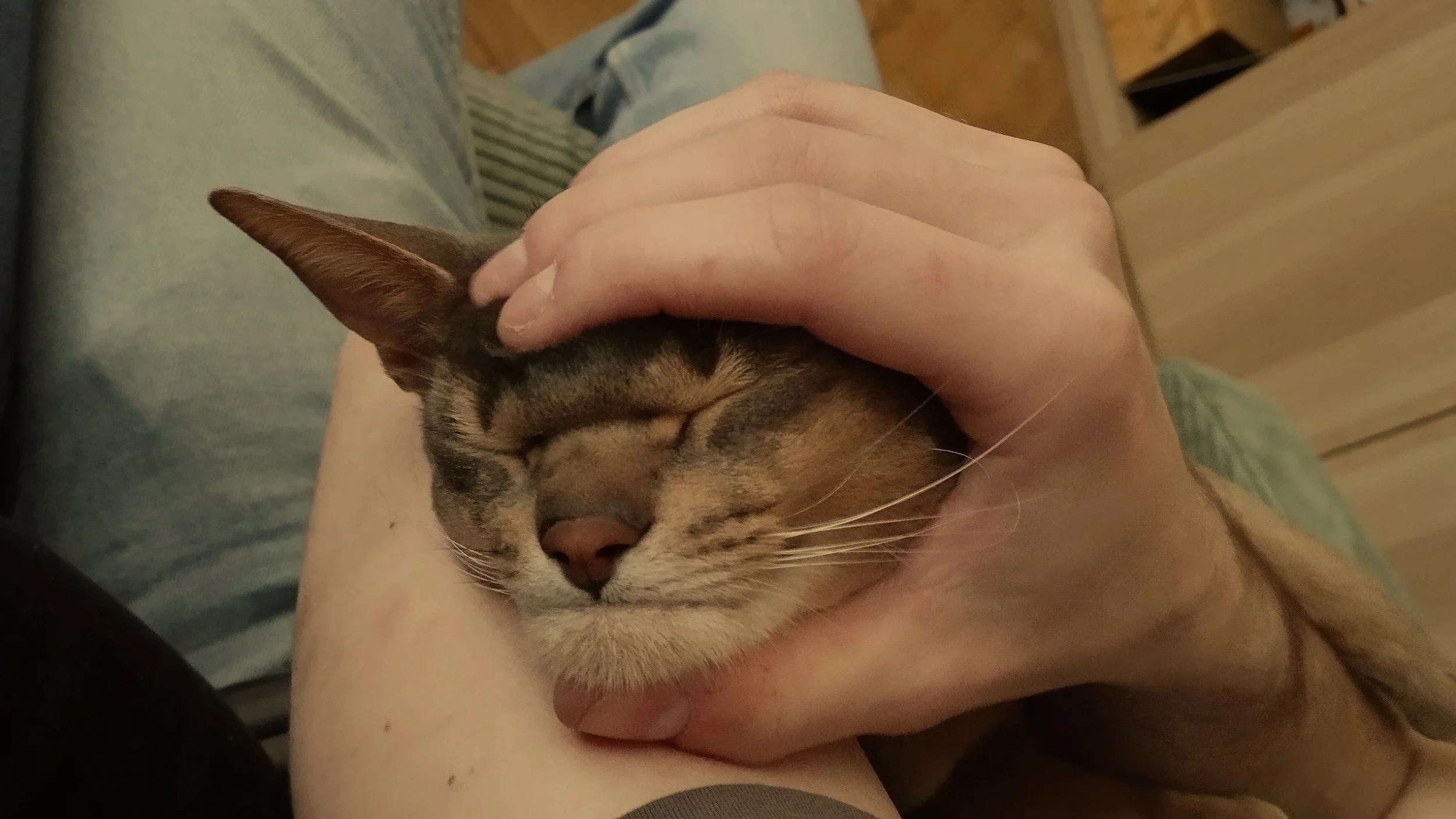 … přítulný čičinek, co se nebojí cizích lidí a rychle si zvykne na nové místo. Mám rád pozornost – tulím se, objímám a když mě hladíte, občas si uslintnu. Vůně všeho druhu mě fascinují, někdy tak moc, že je musím rozdýchat s otevřenou tlamičkou.